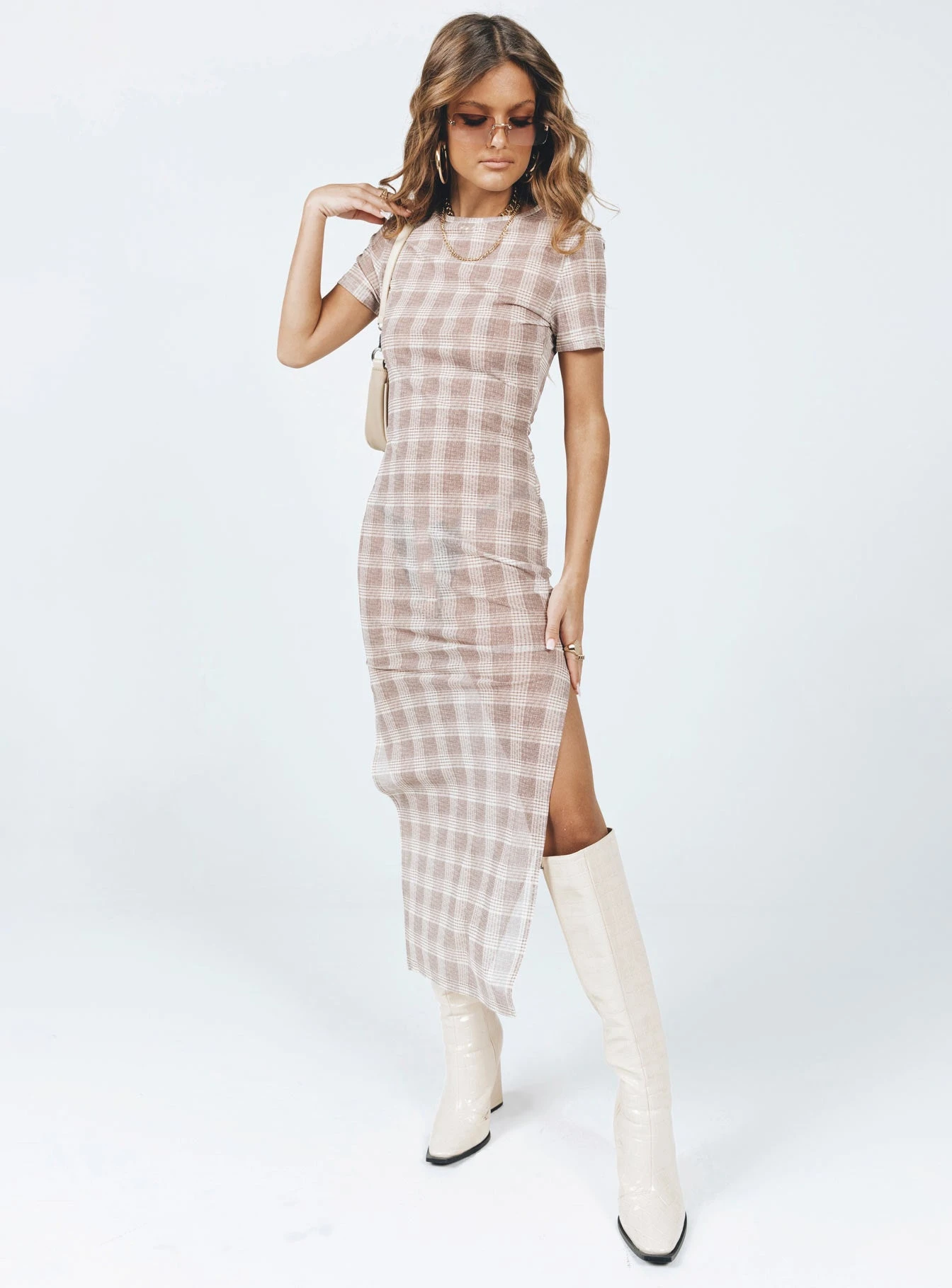Mayfair Midi Dress Beige Plaid